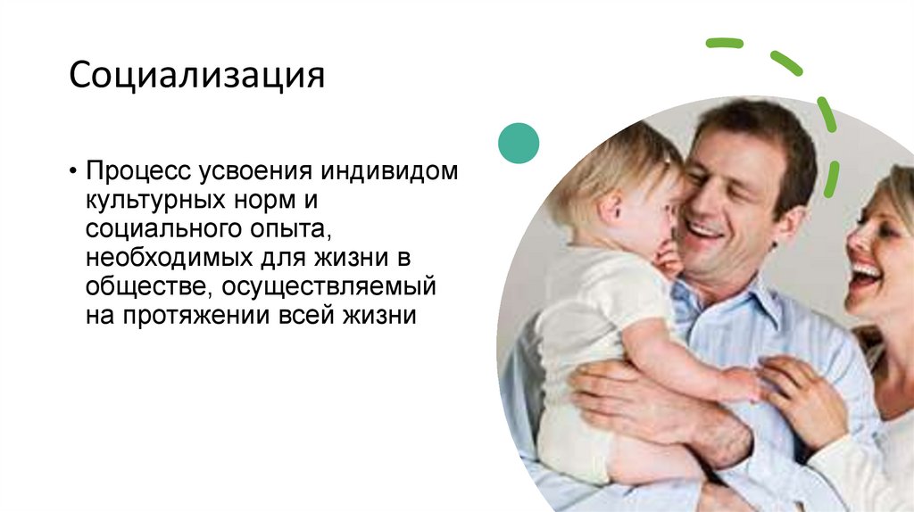 Социализация• Процесс усвоения индивидом