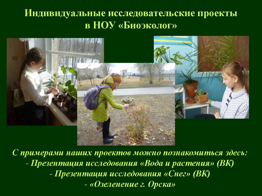 Индивидуальные исследовательские проектыв НОУ «Биоэколог»