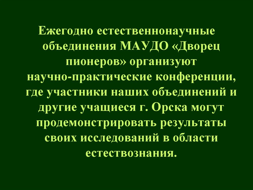 Ежегодно естественнонаучныеобъединения МАУДО «Дворец