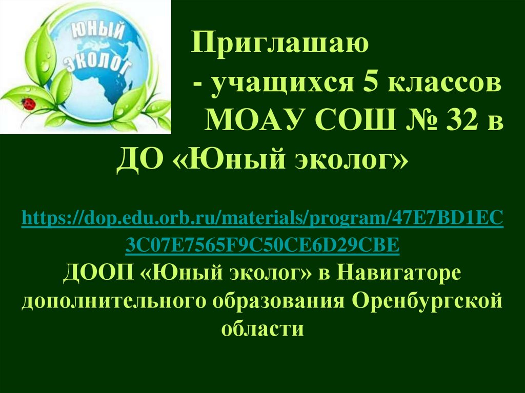 ДООП «Юный эколог» в Навигаторе