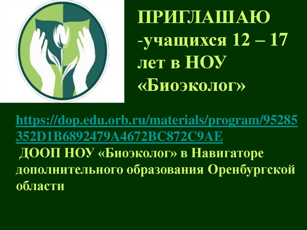 ДООП НОУ «Биоэколог» в Навигаторе