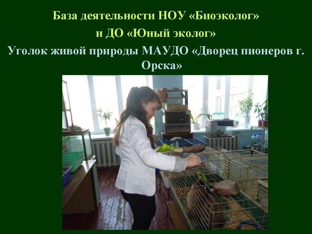 База деятельности НОУ «Биоэколог»и ДО «Юный эколог»