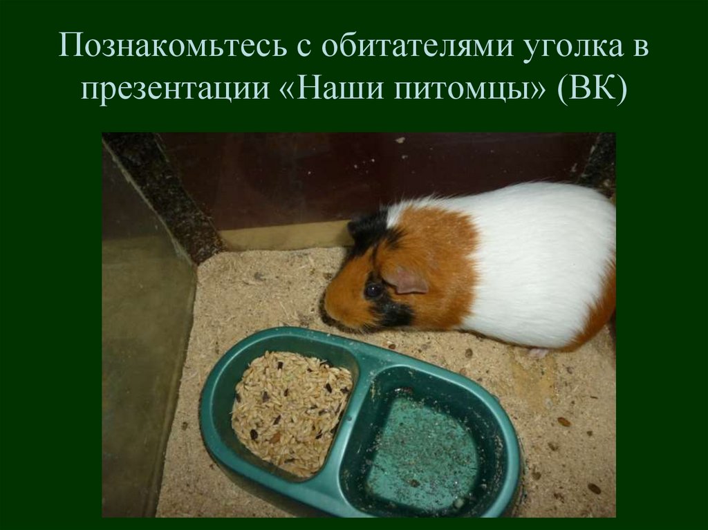 Познакомьтесь с обитателями уголка впрезентации «Наши питомцы» (ВК)