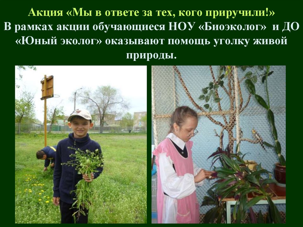 Акция «Мы в ответе за тех, кого приручили!»В рамках акции обучающиеся НОУ «Биоэколог» и ДО