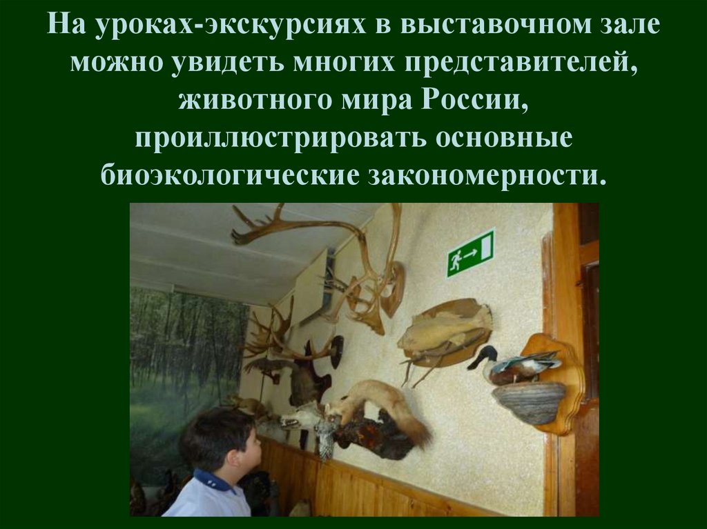 На уроках-экскурсиях в выставочном залеможно увидеть многих представителей,