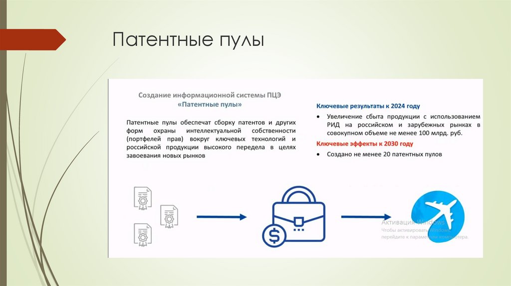 Сформировать патентные пулы вокруг ключевых технологий (технлогии НТИ),