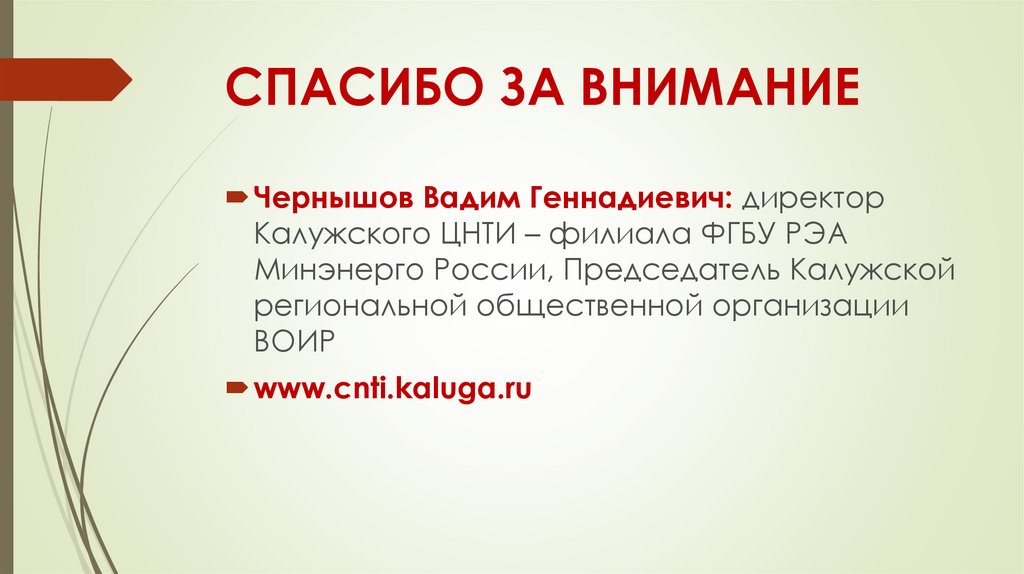 Докладывает Чернышов Вадим Геннадиевич, директор Калужского ЦНТИ –