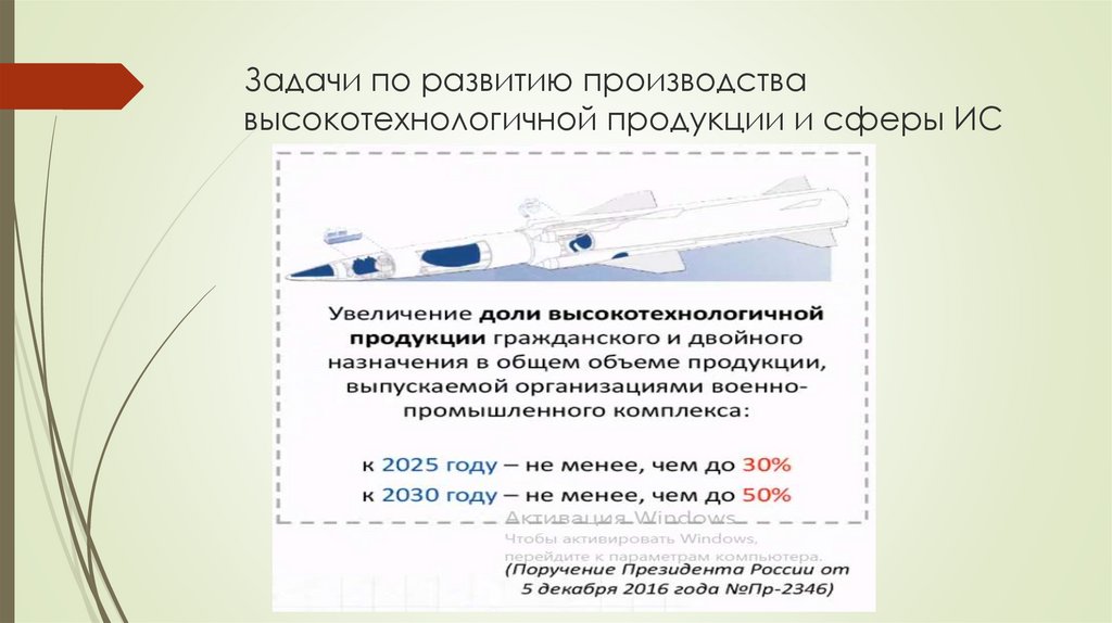 Задачи по развитию производствавысокотехнологичной продукции и сферы ИС