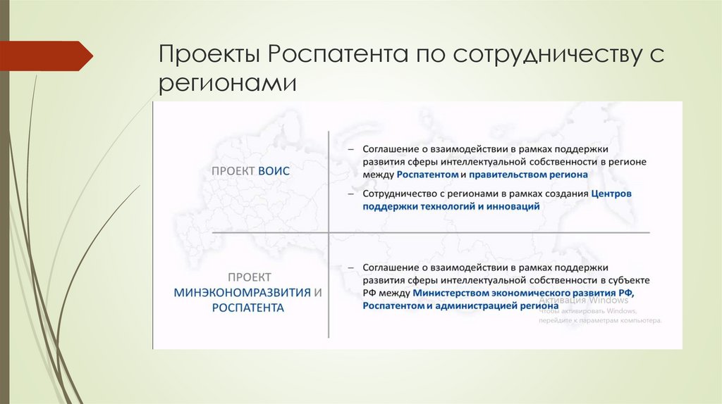 Проекты Роспатента по сотрудничеству срегионами