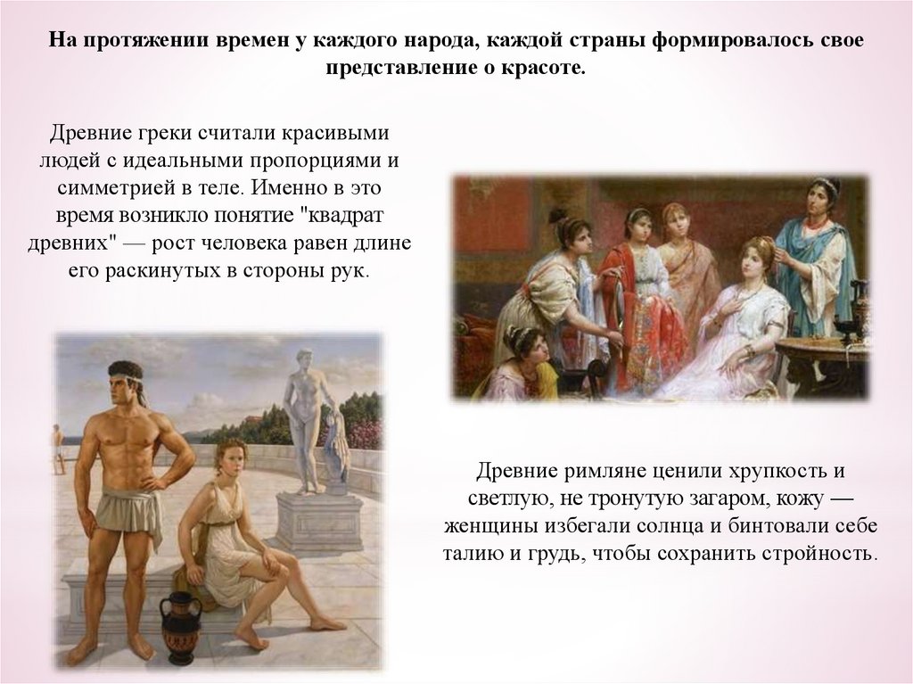 На протяжении времен у каждого народа, каждой страны формировалось своепредставление о красоте.
