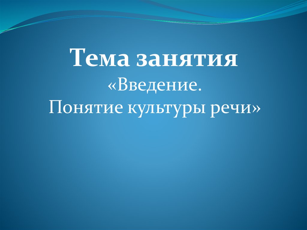 Введение. Понятие культуры речи