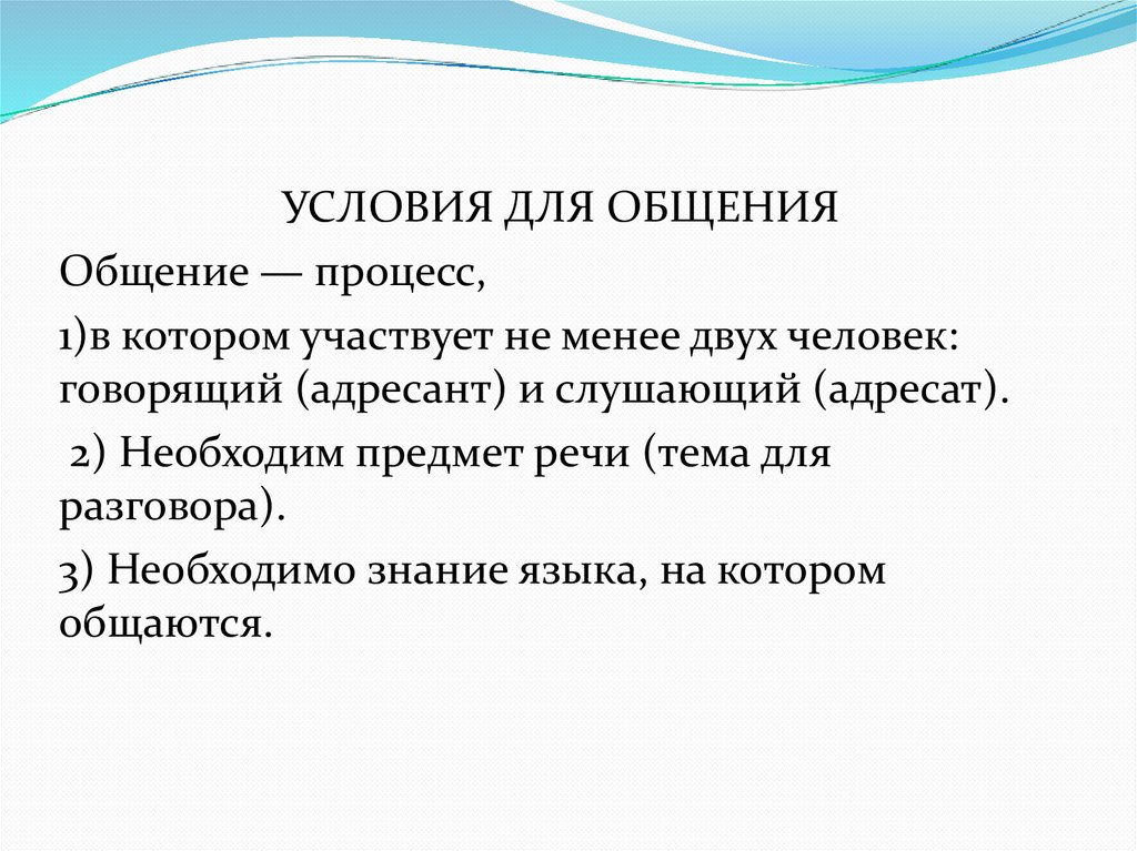 УСЛОВИЯ ДЛЯ ОБЩЕНИЯОбщение — процесс,