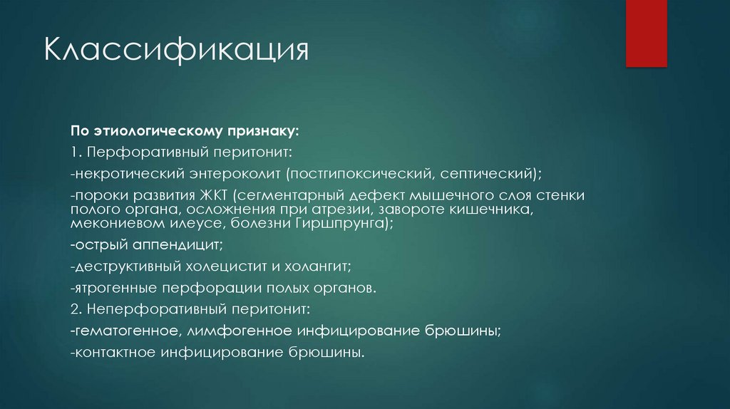 инфицированием брюшины. Среди воспалительных заболеваний органов