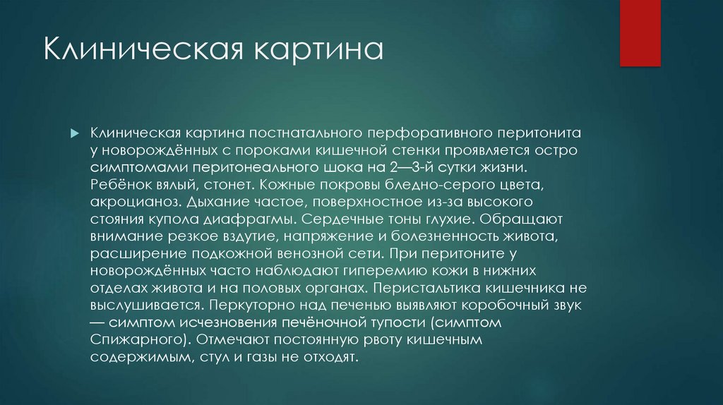 Клиническая картинаКлиническая картина постнатального перфоративного перитонита
