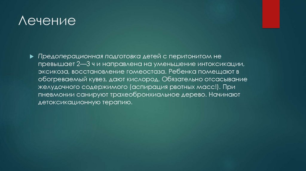 ЛечениеПредоперационная подготовка детей с перитонитом не