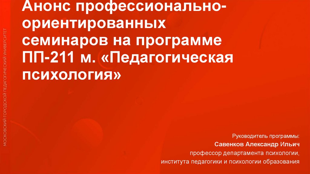 Анонс профессионально-ориентированных семинаров на программе ПП-211 м. «Педагогическая психология»