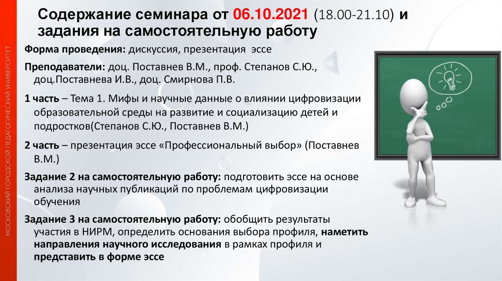 Содержание семинара от 14.10.2021 (18.00-21.10) и заданияна самостоятельную работу