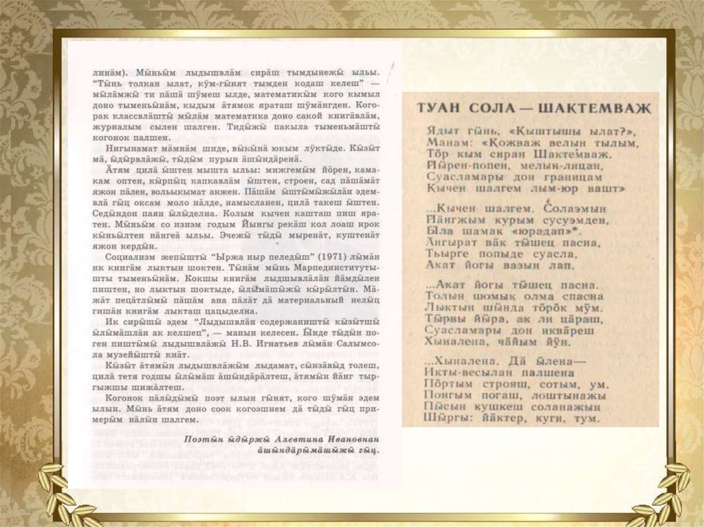 Поэтӹн ӹдӹржӹ Алевнина Ивановнан ӓшӹндӓрӹмӓшӹжӹ гӹц.3.