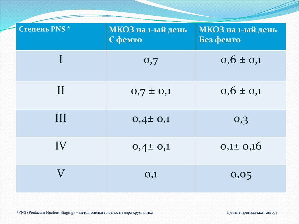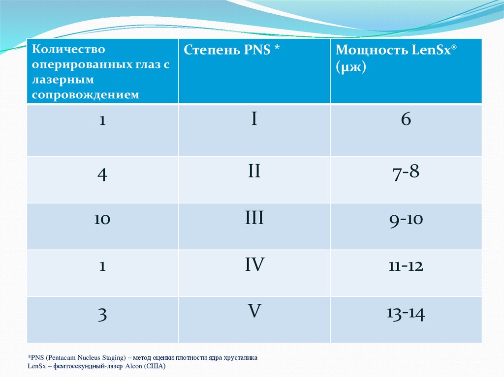 *PNS (Pentacam Nucleus Staging) – метод оценки плотности ядра хрусталика