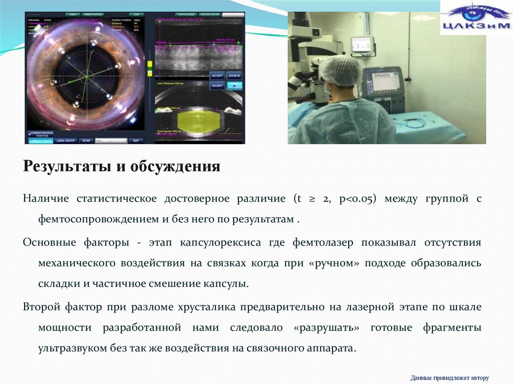 Основные факторы - этап капсулорексиса где фемтолазер показывал отсутствия