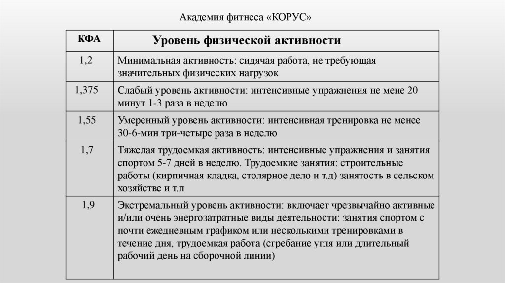 Академия фитнеса «КОРУС»Рациональное питание физиологически