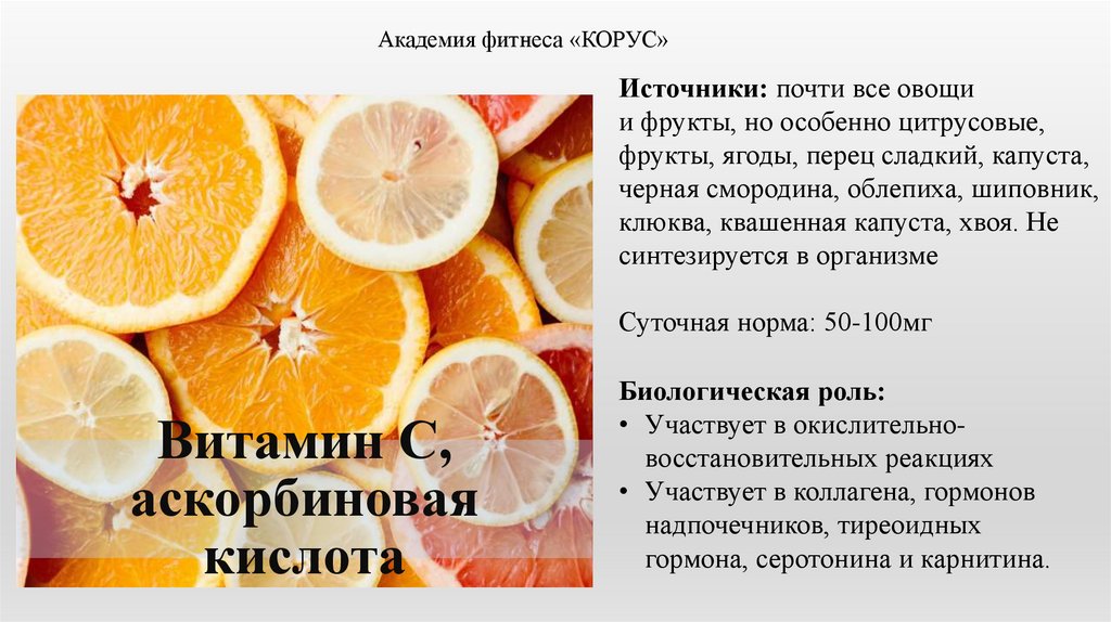 Нутрициология. Академия фитнеса «Корус»