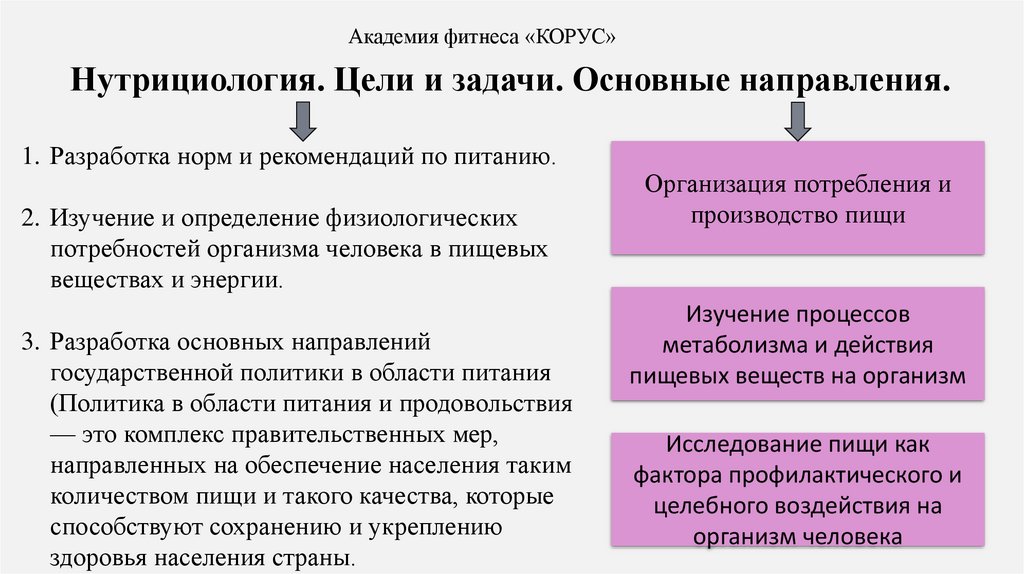 Академия фитнеса «КОРУС»Нутрициология. Цели и задачи. Основные направления.