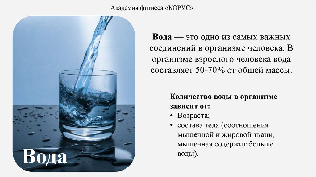 Академия фитнеса «КОРУС»Вода — это одно из самых важных