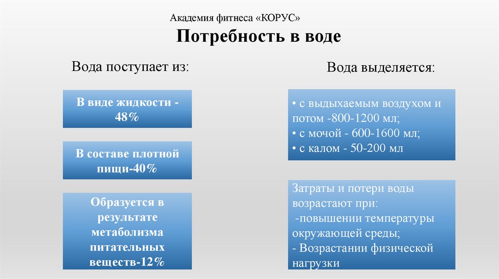 Академия фитнеса «КОРУС»Потребность в воде