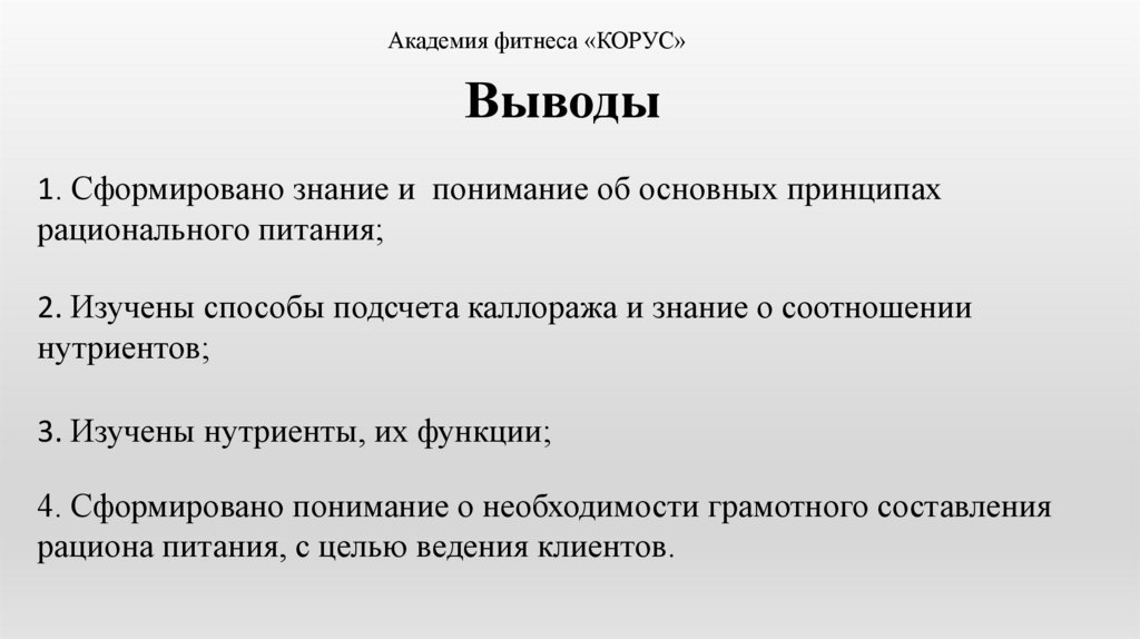 Академия фитнеса «КОРУС»Выводы