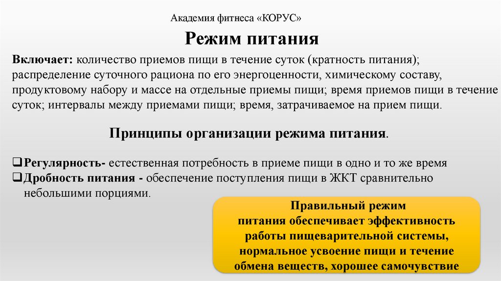Академия фитнеса «КОРУС»Режим питания