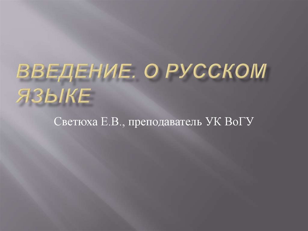 Введение. О русском языке