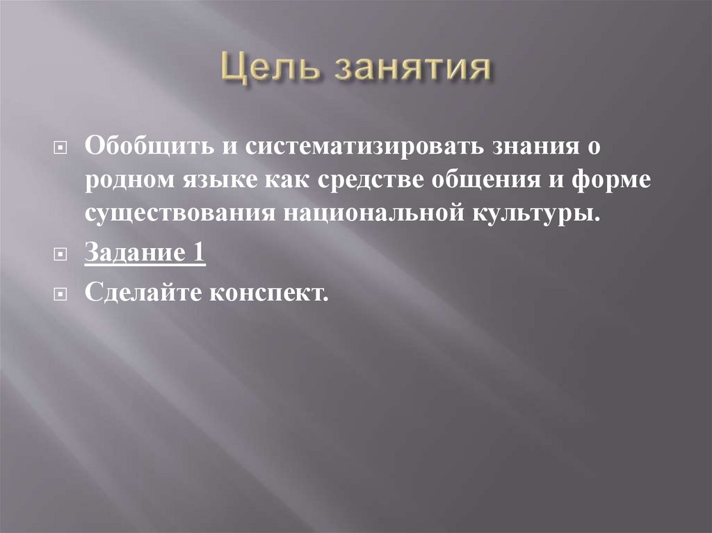 Обобщить и систематизировать знания ородном языке как средстве общения и форме