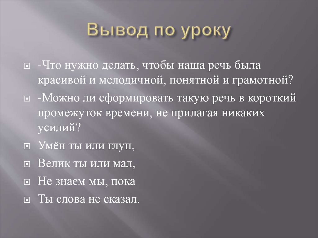 -Что нужно делать, чтобы наша речь былакрасивой и мелодичной, понятной и грамотной?