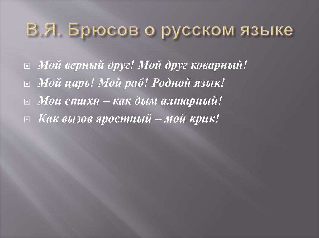 Мой верный друг! Мой друг коварный!Мой царь! Мой раб! Родной язык!