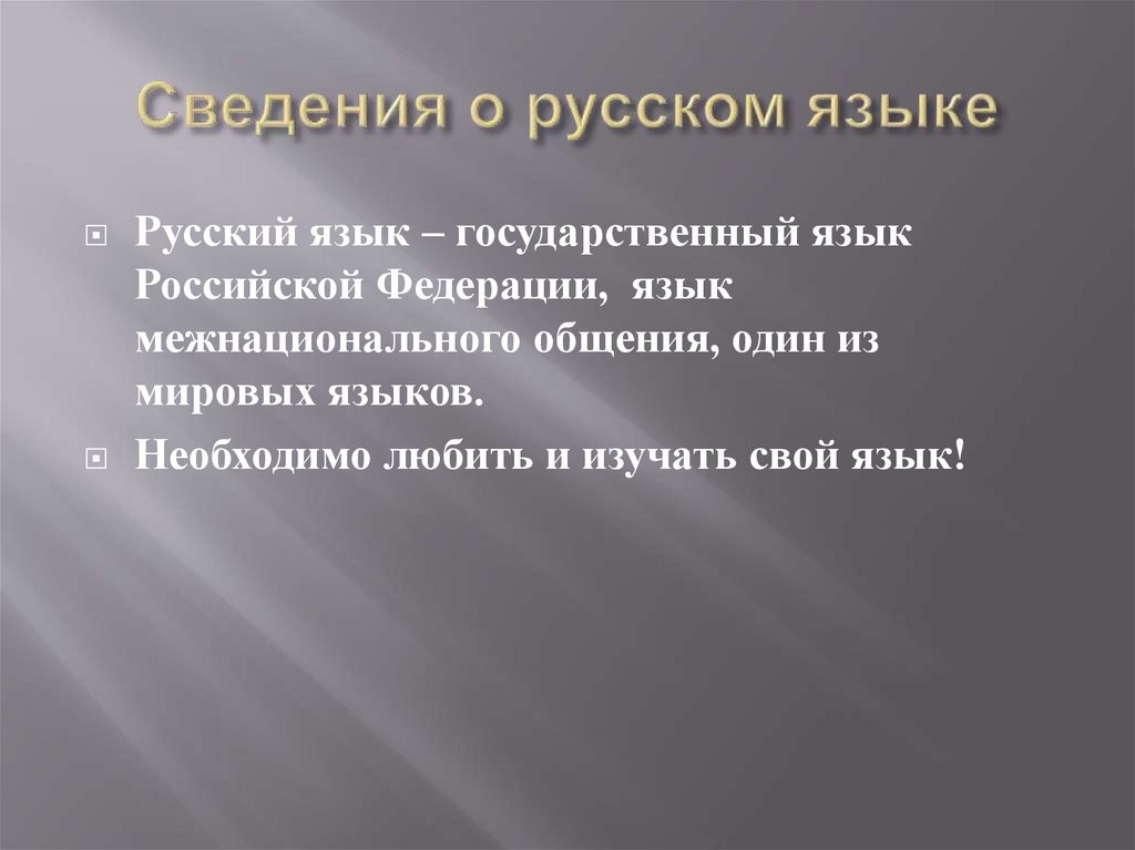 Русский язык – государственный языкРоссийской Федерации, язык