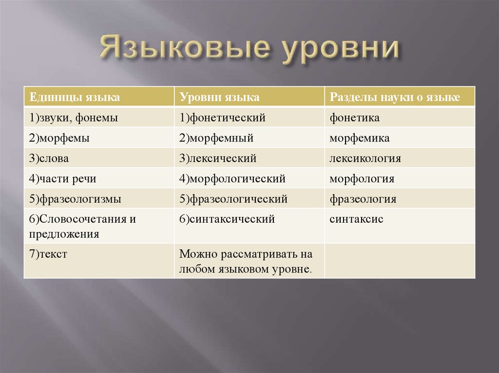 Единицы языкаУровни языка