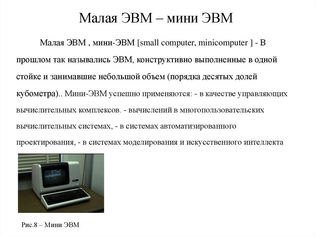 Малая ЭВМ – мини ЭВММалая ЭВМ , мини-ЭВМ [small computer, minicomputer ] - В