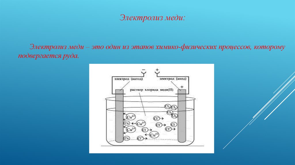 Электролиз меди:Электролиз меди – это один из этапов химико-физических процессов, которому