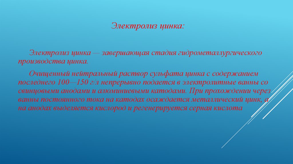 Электролиз цинка:Электролиз цинка — завершающая стадия гидрометаллургического