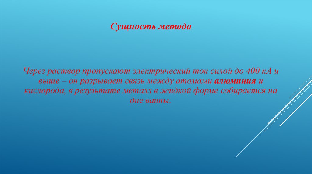 Сущность методаЧерез раствор пропускают электрический ток силой до 400 кА и