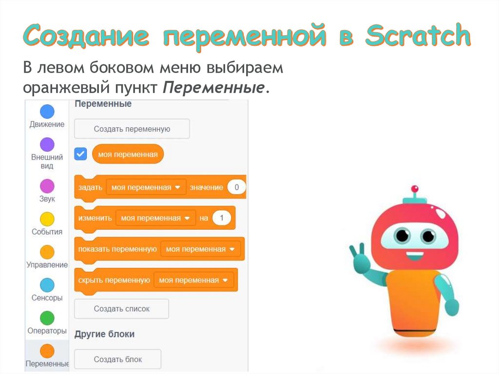 В левом боковом меню выбираеморанжевый пункт Переменные.