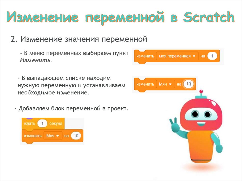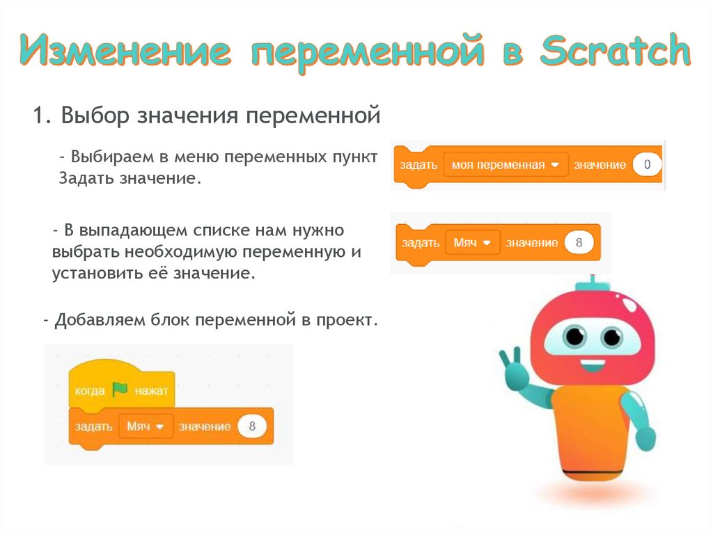 2. Изменение значения переменной- В меню переменных выбираем пункт