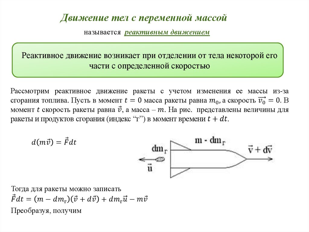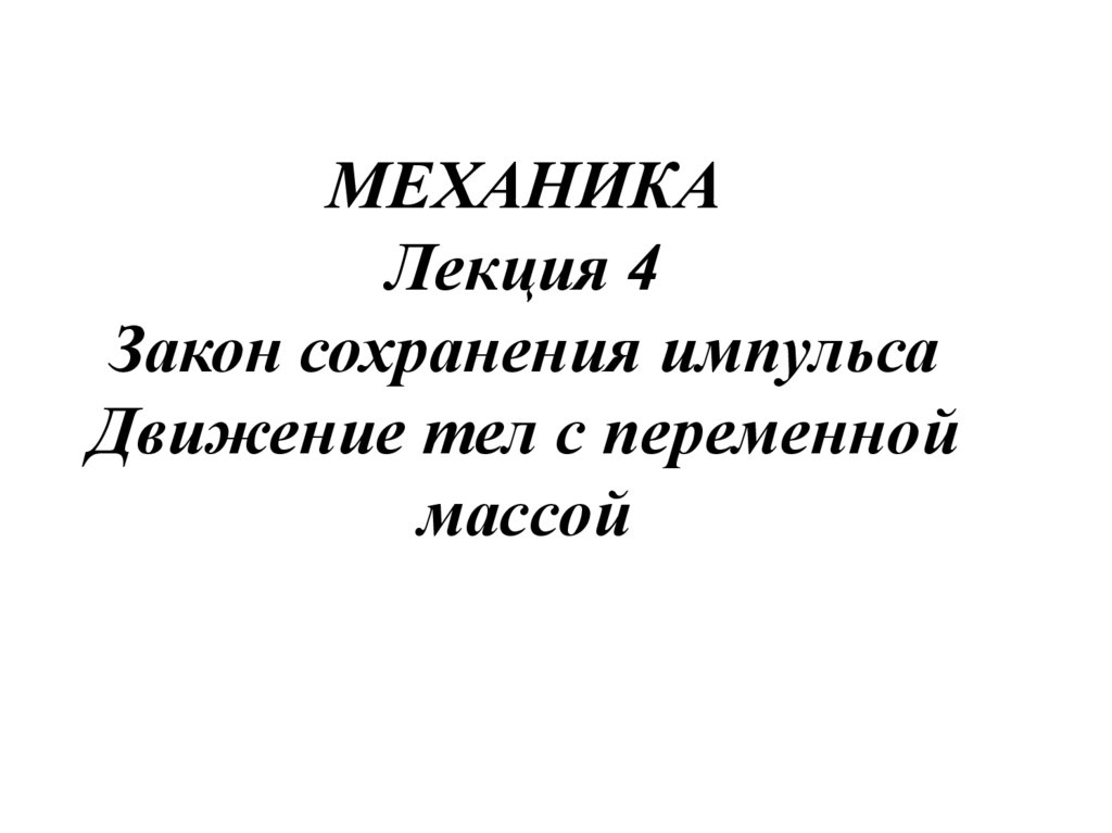 Механика. Лекция 4. Закон сохранения импульса движение тел с переменной массой