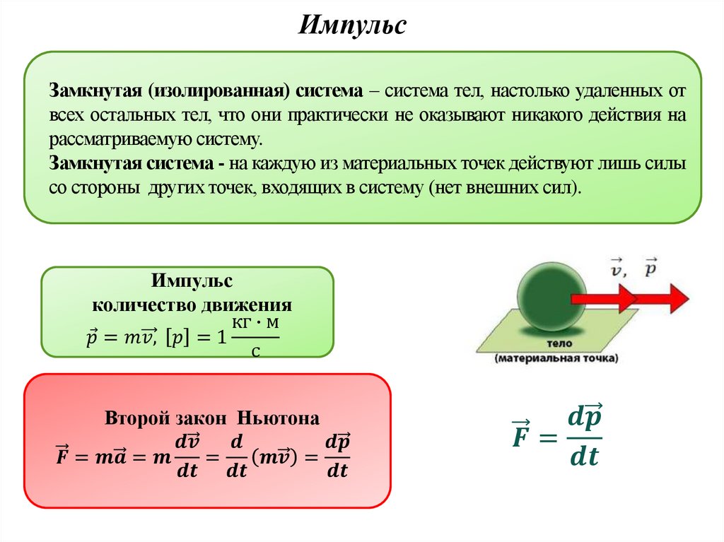 ИмпульсЗамкнутая (изолированная) система – система тел, настолько удаленных от