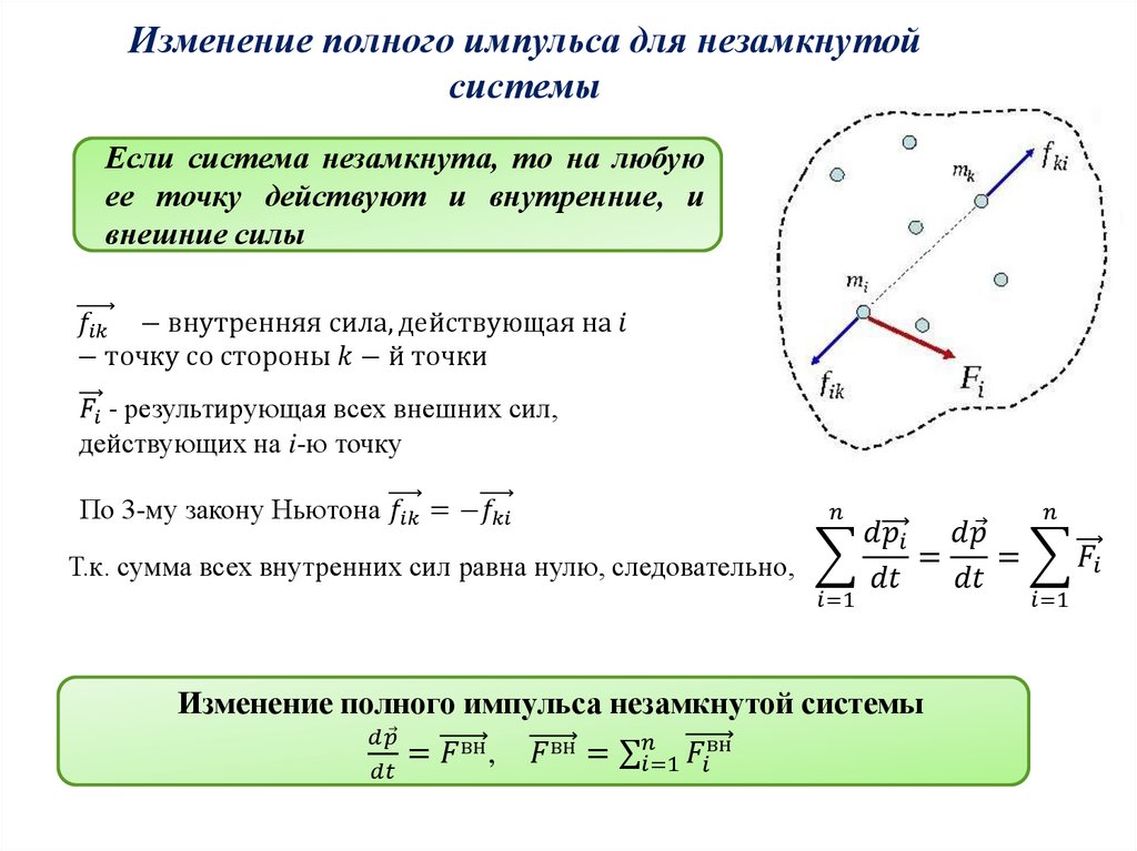со стороны других точек, входящих в систему (нет внешних сил).
