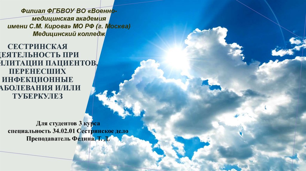 Сестринская деятельность при илитации пациентов, перенесших инфекционные аболевания и/или туберкулез