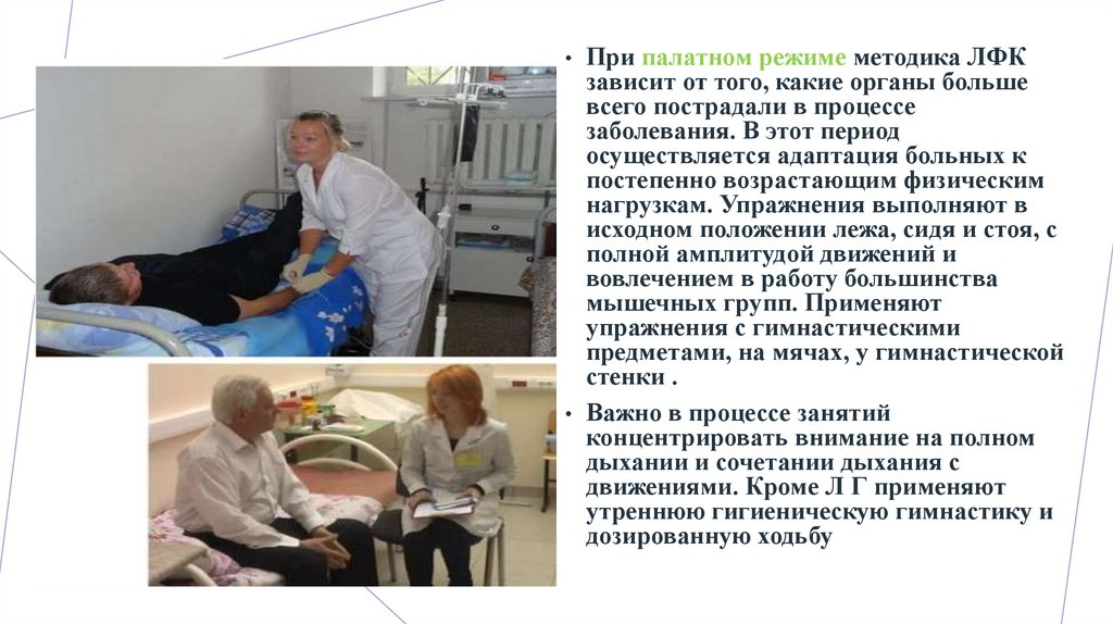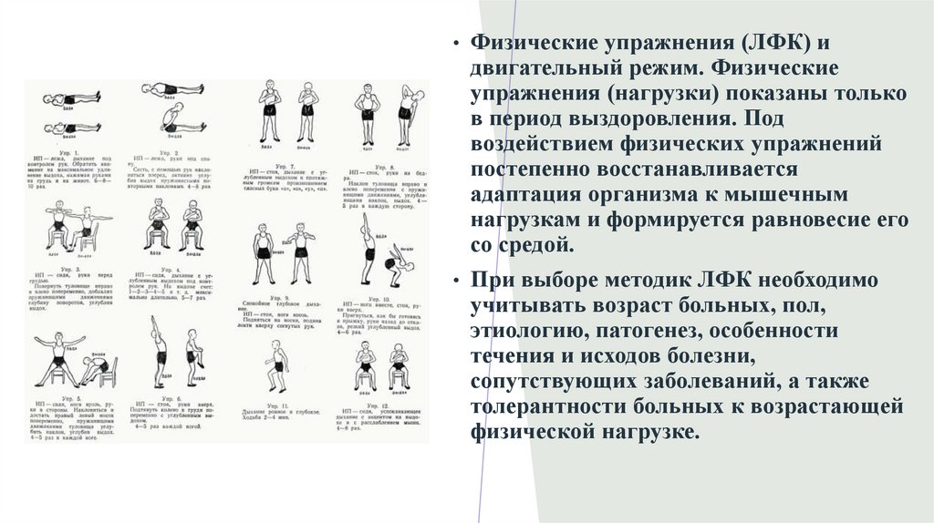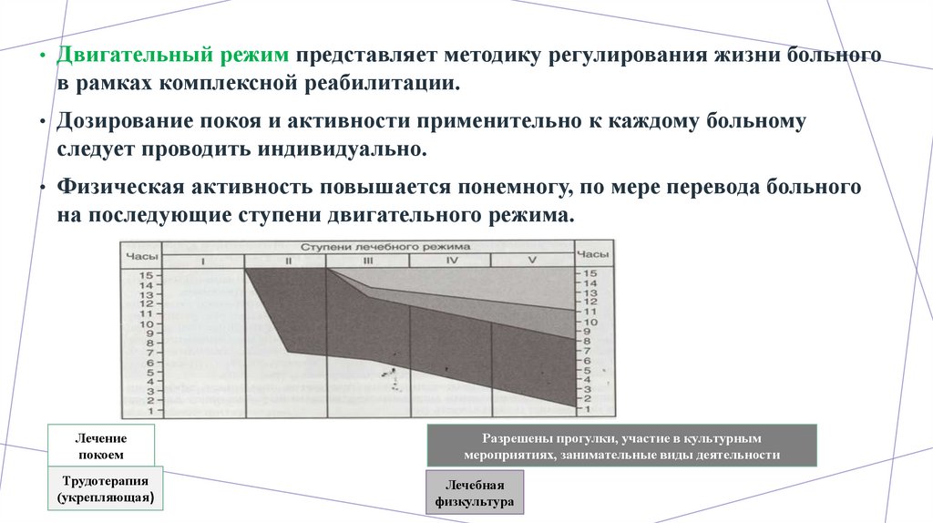 ходьбу (вначале в пределах палаты) по отделению, затем по территории