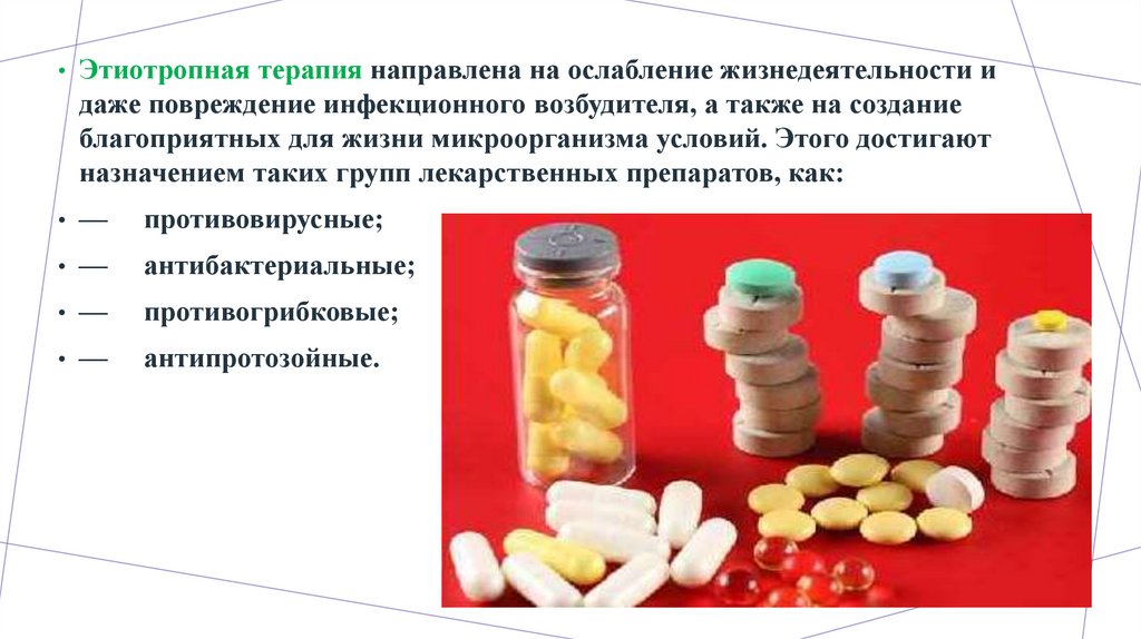 Этиотропная терапия направлена на ослабление жизнедеятельности и