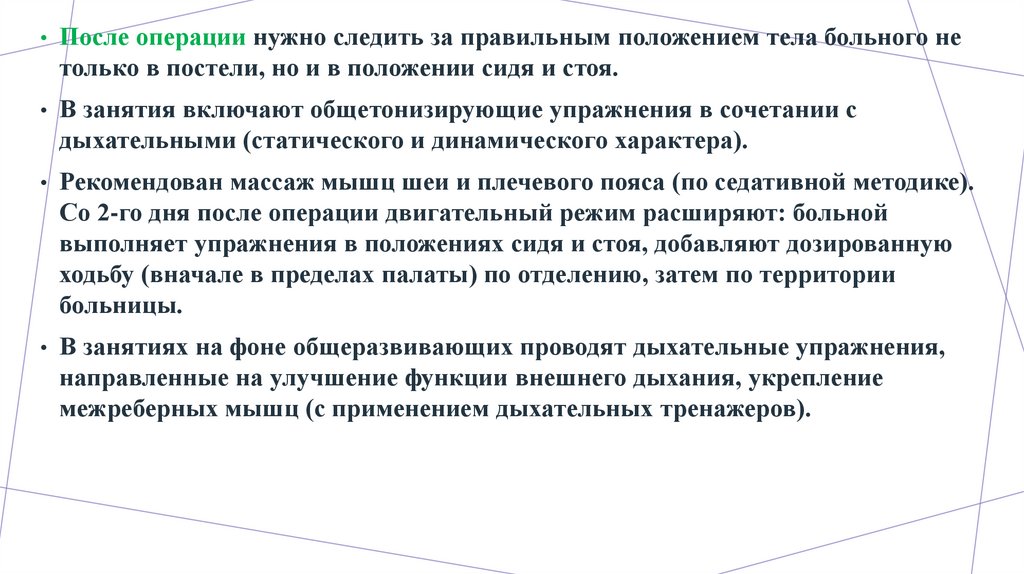 Со 2-го дня после операции двигательный режим расширяют: больной